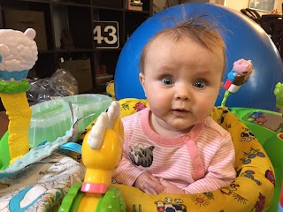 You are now 5 months old. Let me just say Month 4 brought on a whole new set of challenges and rewards. For example, you did start sleeping really well. You often sleep 9-10 hours at night, with one record-breaking 13 hour night. Let me just say how rewarding that is after the lack of sleep we've experienced the last few months. That being said, we know it may not last, because you often roll on your tummy and can't get back over.