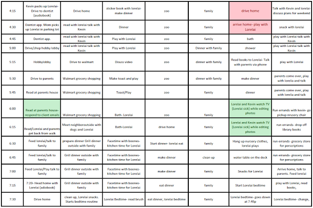2. I feel that I do a lot of photography (my side hustle) but in an overall week, I do a lot less than I thought. Plus you'll note that I tried to put when Lorelai was asleep vs. awake for photo sessions. I only spent 5 or so hours that week doing photo sessions while she was awake.